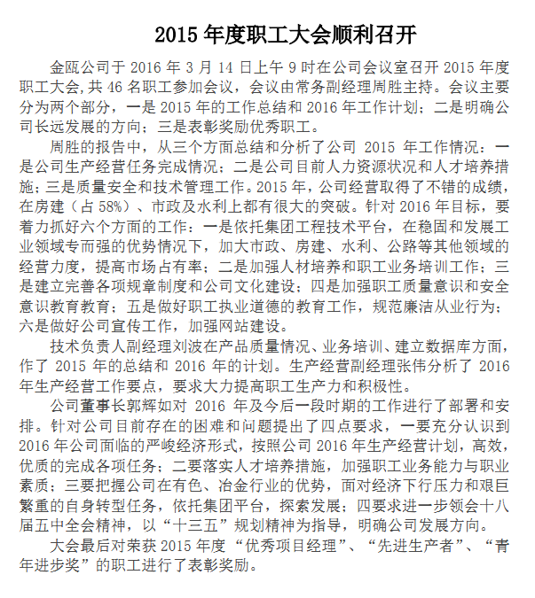 2015年度員工大會(huì)順利召開