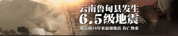 8月3日16時(shí)30分,云南省昭通市魯?shù)榭h發(fā)生6.5級(jí)地震,震源深度12公里。地震給魯?shù)榭h、巧家縣人民群眾生命財(cái)產(chǎn)造成重大損失。系云南18年來(lái)最強(qiáng)地震,傷亡慘重。據(jù)云南省民政廳公布數(shù)據(jù),截至昨天(災(zāi)后72小時(shí)):2014年8月6號(hào)10點(diǎn)30分,地震造成昭通市魯?shù)榭h、巧家縣、昭陽(yáng)區(qū)、永善縣和曲靖市會(huì)澤縣108.84萬(wàn)人受災(zāi),589人死亡,而前晚(災(zāi)后48小時(shí))這個(gè)數(shù)字還是410人。災(zāi)情牽動(dòng)著每一位中國(guó)人的心。