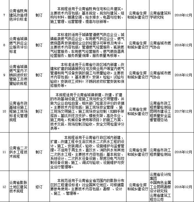 附件:《2015年云南省工程建設地方標準編制修訂計劃》